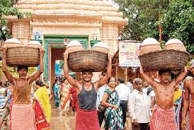 Photo : Temple servants carrying Mahaprasad |